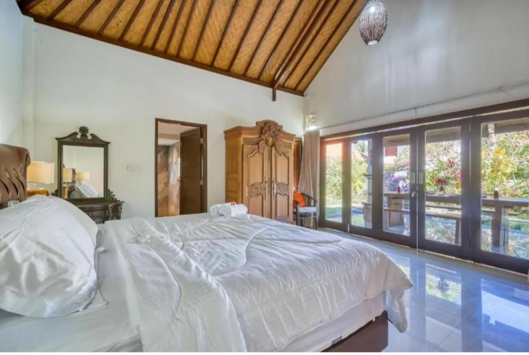 The closest airport is Ngurah Rai International, located 60 miles from the Karangasem villa.